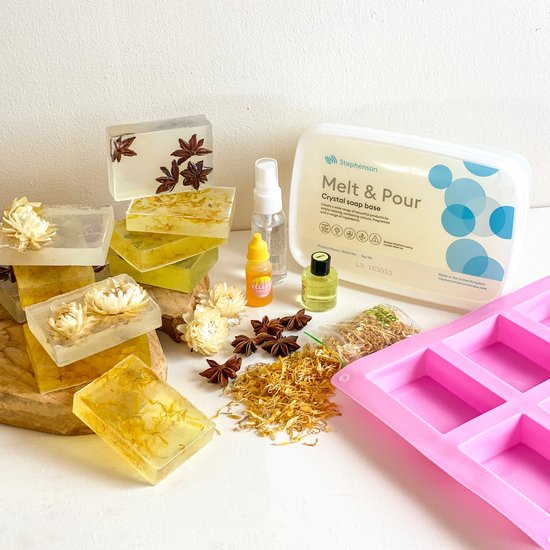 💡 TIP: Wil je een meer natuurlijke zeep maken, gebruik dan ingrediënten als maanzaad (scrub effect) en havermout (verzorging van de huid) en meng deze door je zeepmengsel. Voor natuurlijke kleurstoffen kun je kiezen voor bijvoorbeeld kleipoeders.